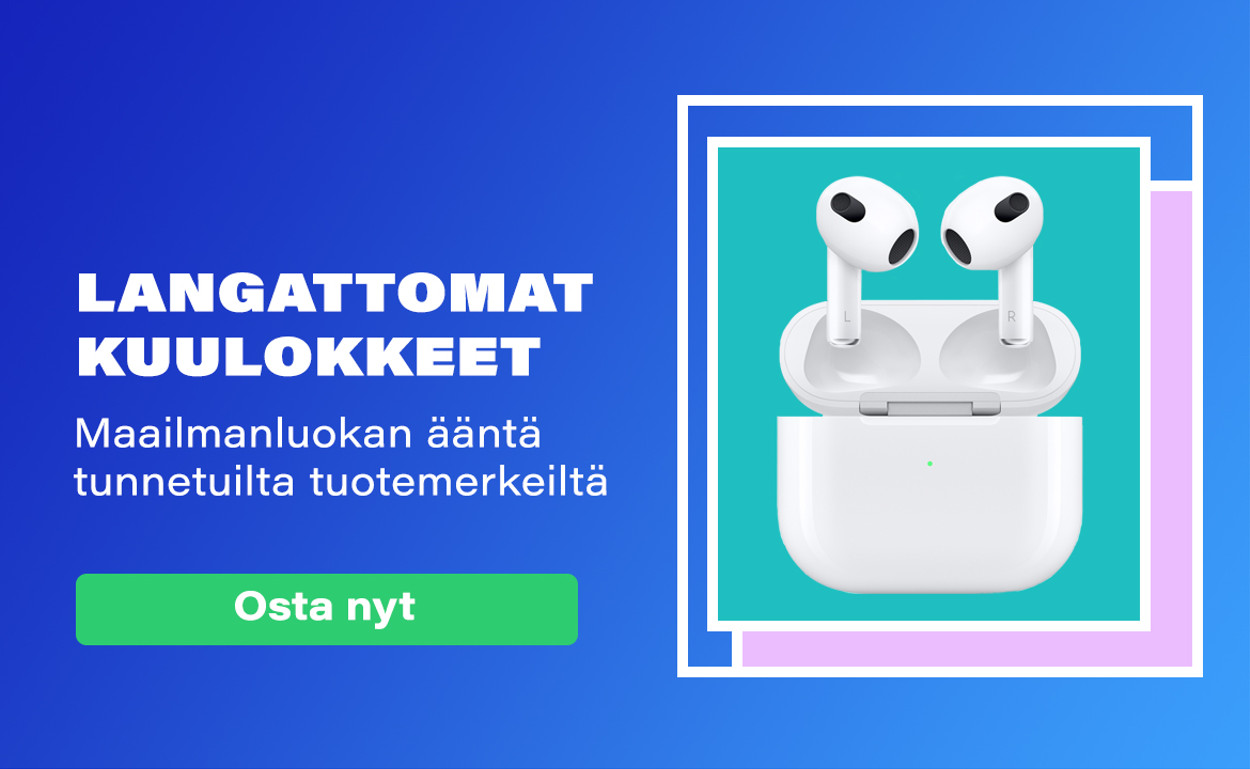 Laajasta kuulokevalikoimastamme löydät AirPodsit, Galaxy Budsit ja monia edullisia vaihtoehtoja. Saatavilla on sekä langattomia että langallisia kuulokkeita eri kokoisina ja eri käyttötilanteisiin.