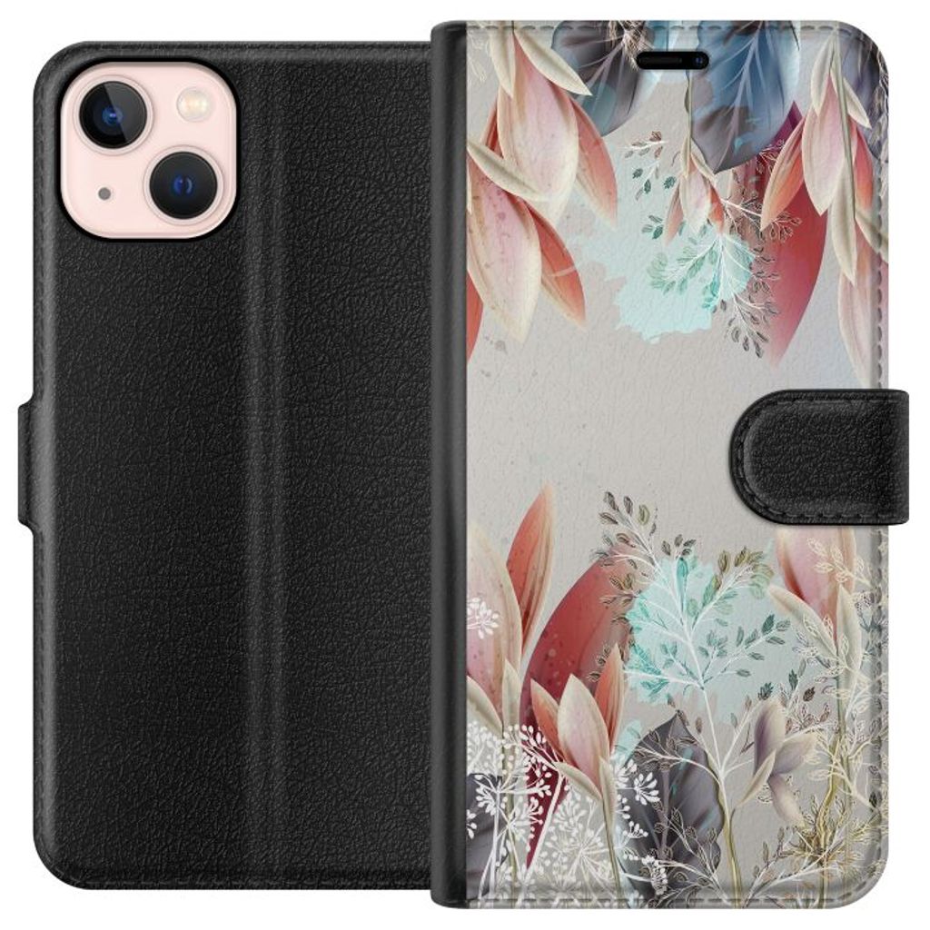 Apple iPhone 13 Musta Lompakkokotelo Blommor