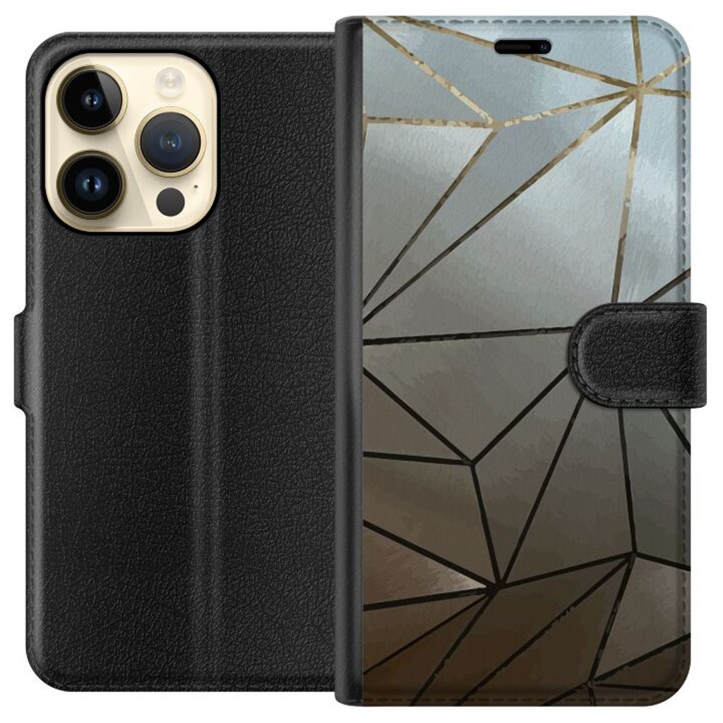 Apple iPhone 14 Pro Musta Lompakkokotelo Mönster Rosé