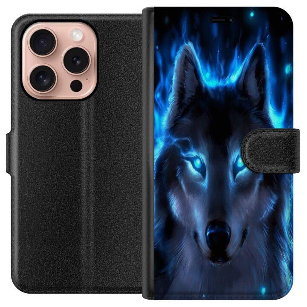 Apple iPhone 16 Pro Musta Lompakkokotelo Blå Varg