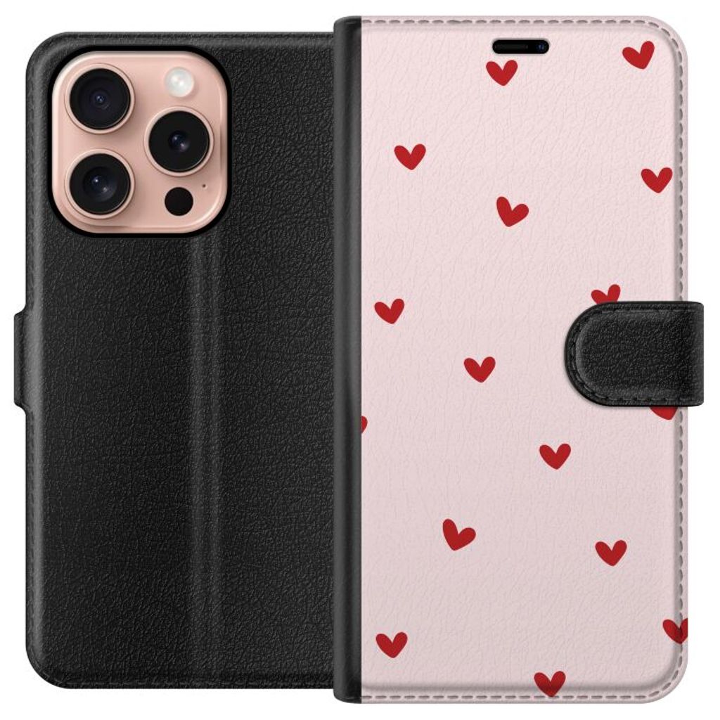 Apple iPhone 16 Pro Musta Lompakkokotelo Små Hjärtan