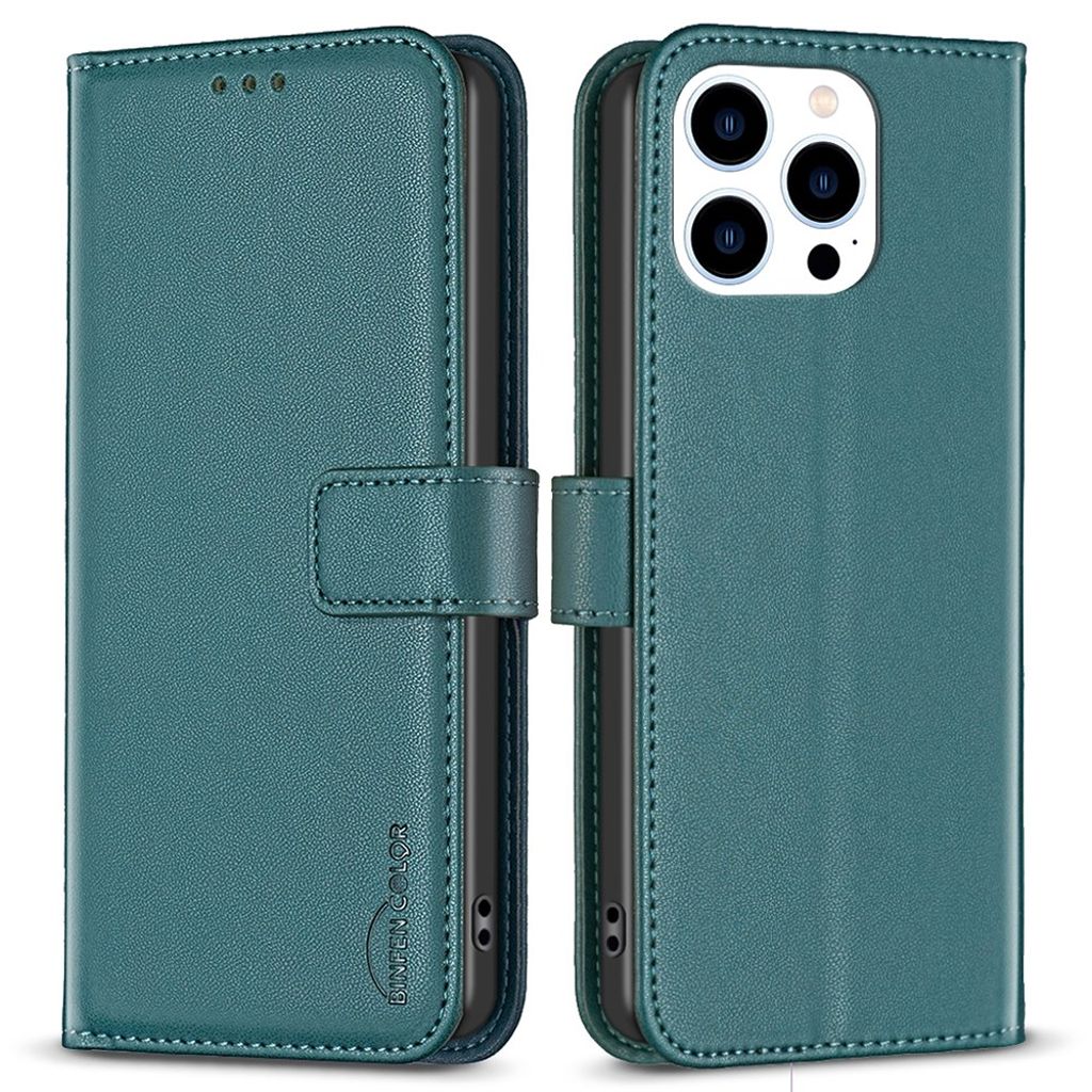 BINFEN COLOR iPhone 16 Pro Max Lompakkokotelo Jalustalla – Vihreä