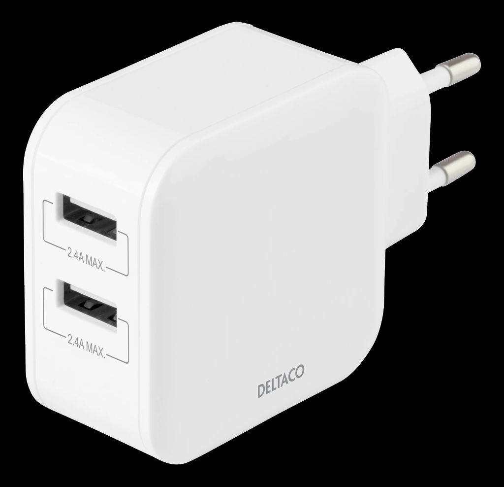 Deltaco Seinälaturi kahdella USB-A-portilla 24W - Valkoinen