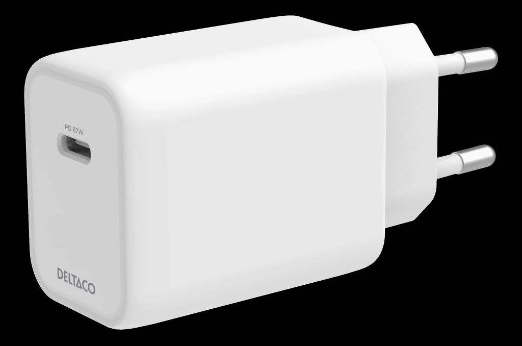 Deltaco USB-C GaN -seinälaturi 67W – Valkoinen