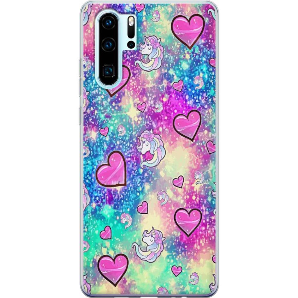 Huawei P30 Pro Läpinäkyvä Puhelinkotelo Enhörning och hjärtan