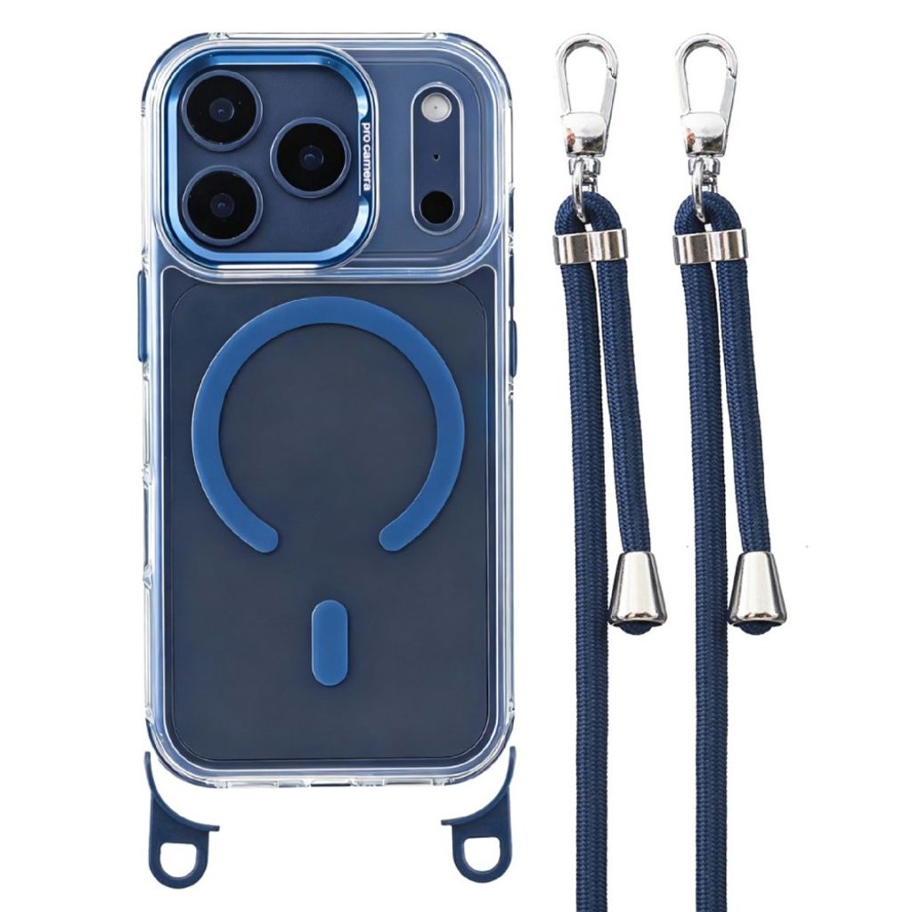 iPhone 17 Pro Max MagSafe Kuori kaulanauhalla - Läpinäkyvä sininen