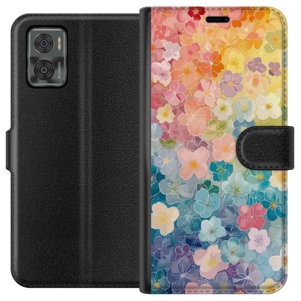 Motorola Moto E22i Musta Lompakkokotelo Miniatyrblommor
