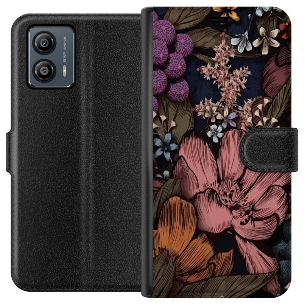 Motorola Moto G53 Musta Lompakkokotelo Tecknade blommor