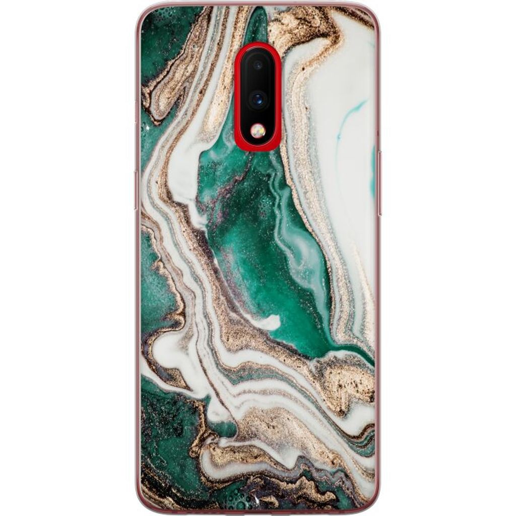 OnePlus 7 Läpinäkyvä Puhelinkotelo Grön / Guld marmor