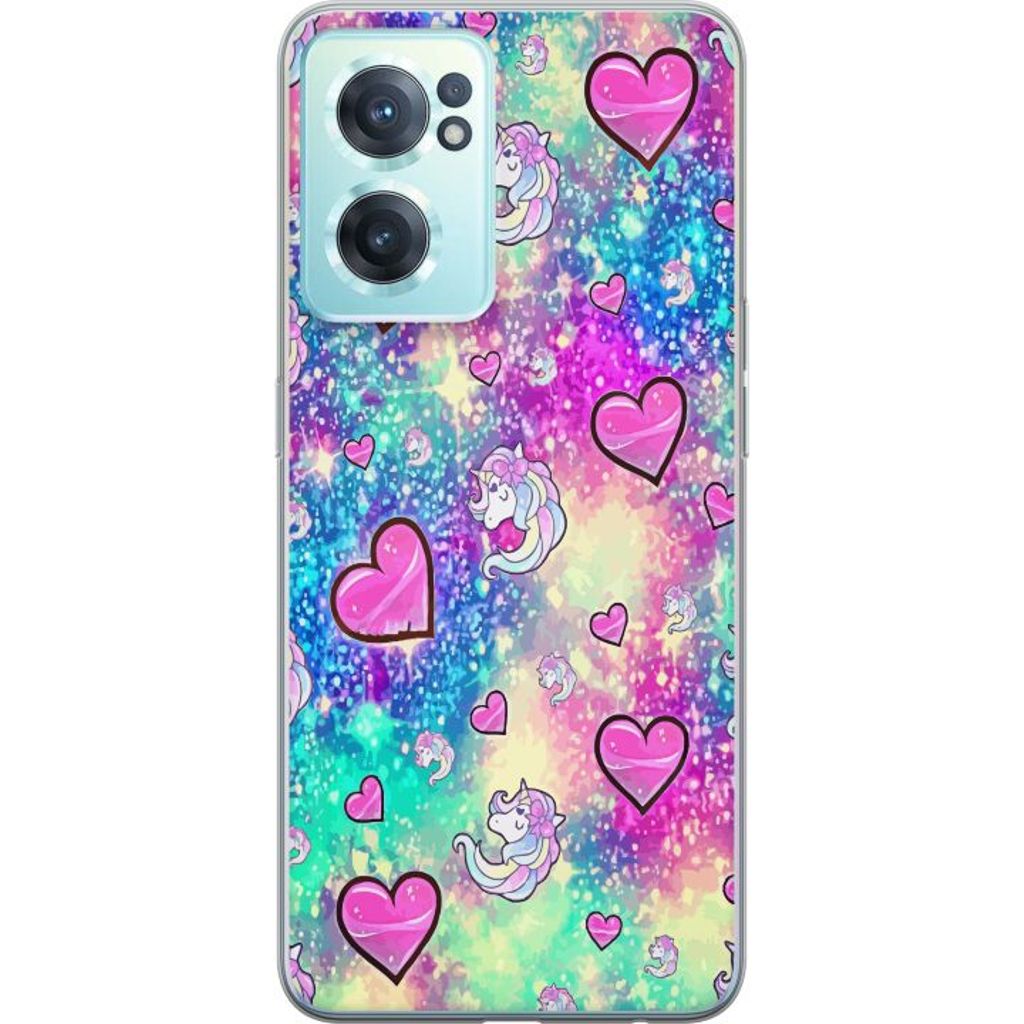 OnePlus Nord CE 2 5G Läpinäkyvä Puhelinkotelo Enhörning och hjärtan