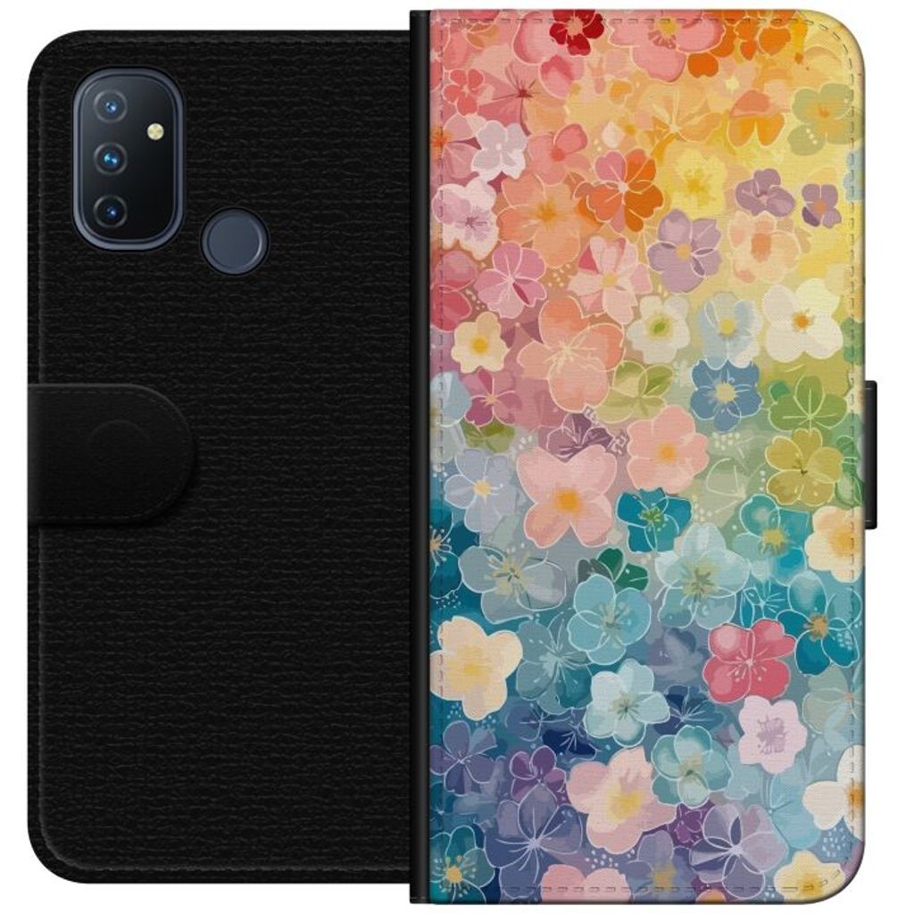 OnePlus Nord N100 Musta Lompakkokotelo Miniatyrblommor
