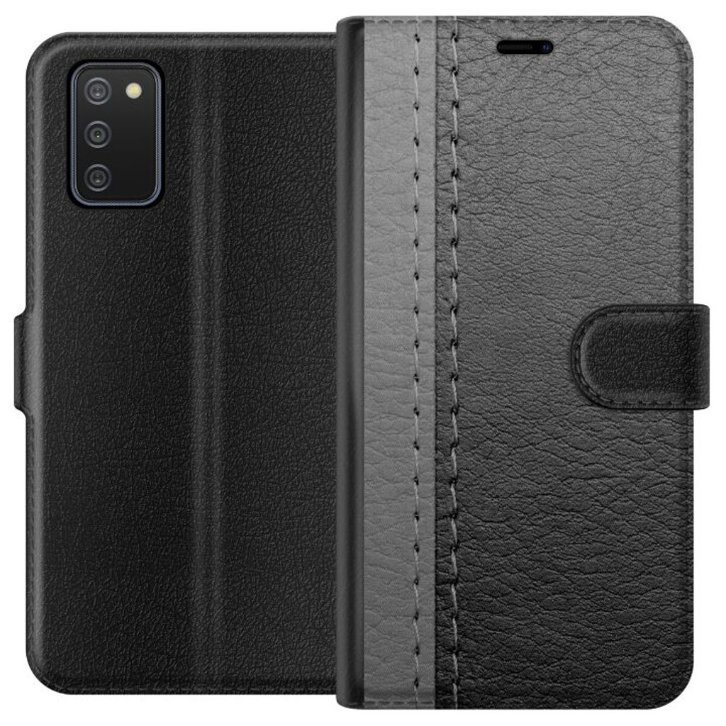 Samsung Galaxy A02s Musta Lompakkokotelo Grått Fake Läder