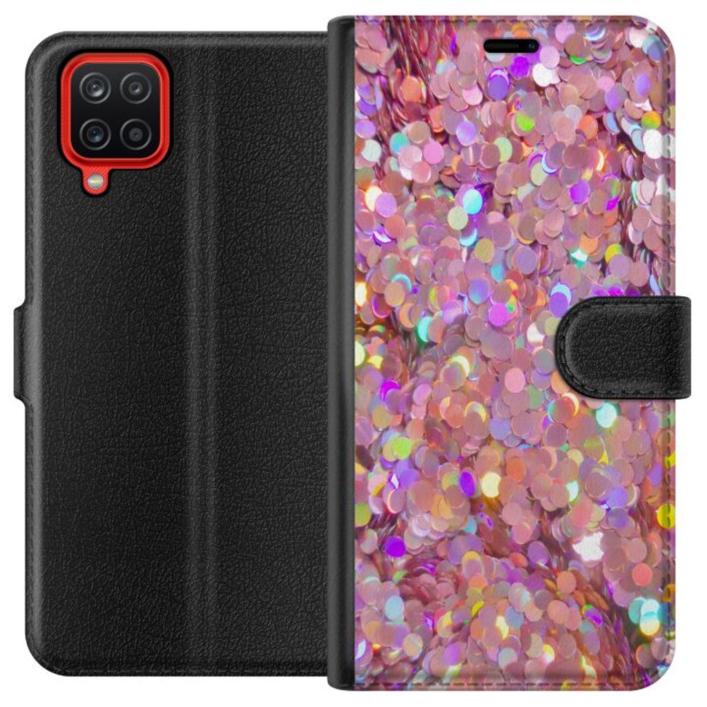 Samsung Galaxy A12 Musta Lompakkokotelo Glitter