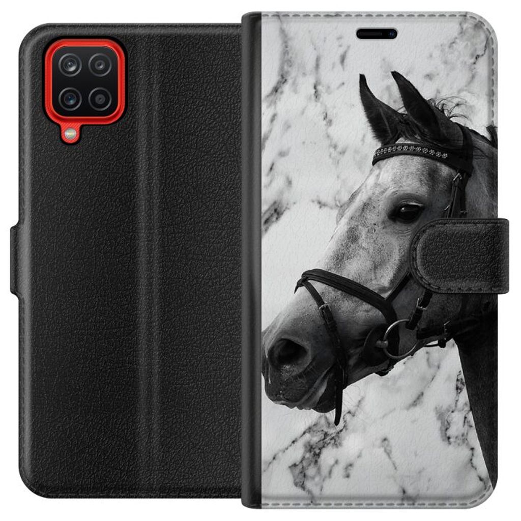 Samsung Galaxy A12 Musta Lompakkokotelo Marmor med häst