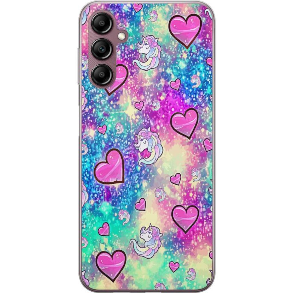 Samsung Galaxy A14 5G Läpinäkyvä Puhelinkotelo Enhörning och hjärtan