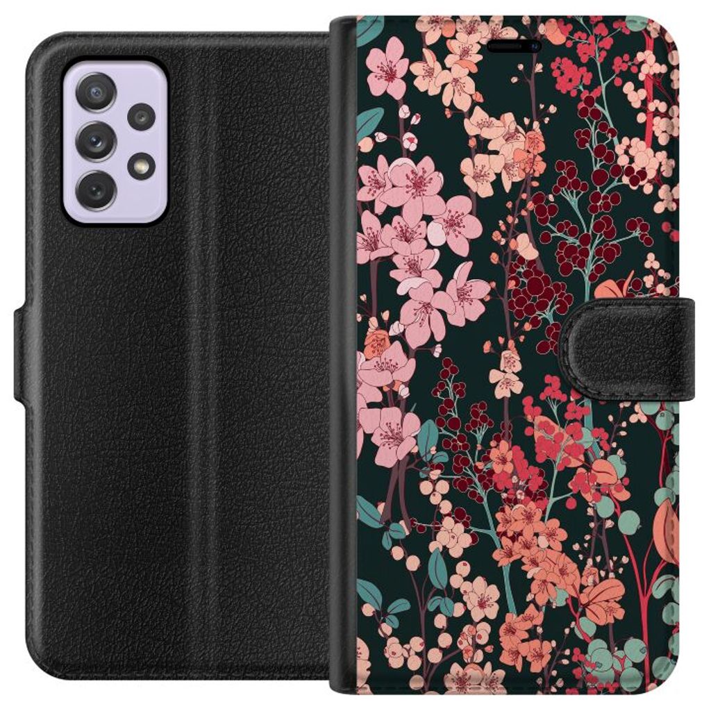 Samsung Galaxy A52s 5G Musta Lompakkokotelo Blommor