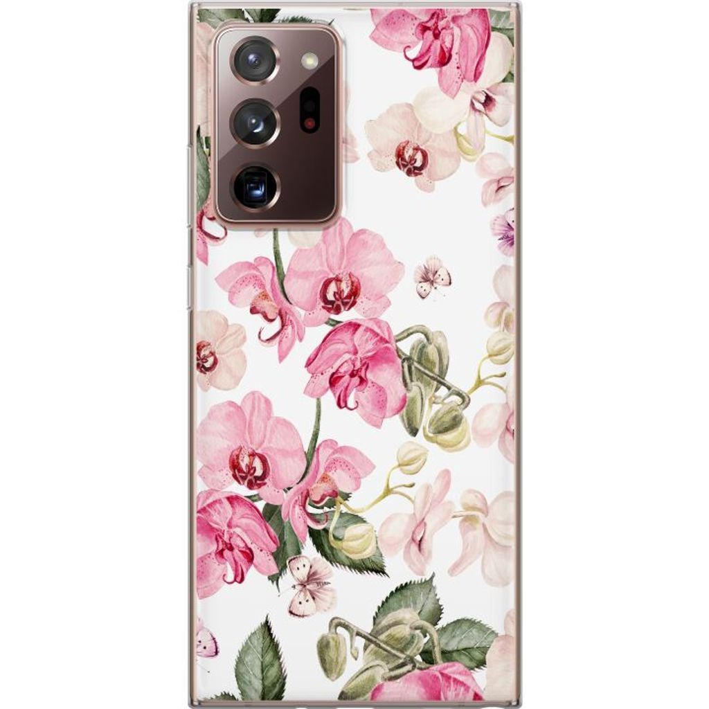 Samsung Galaxy Note20 Ultra Läpinäkyvä Puhelinkotelo Rosa blommor