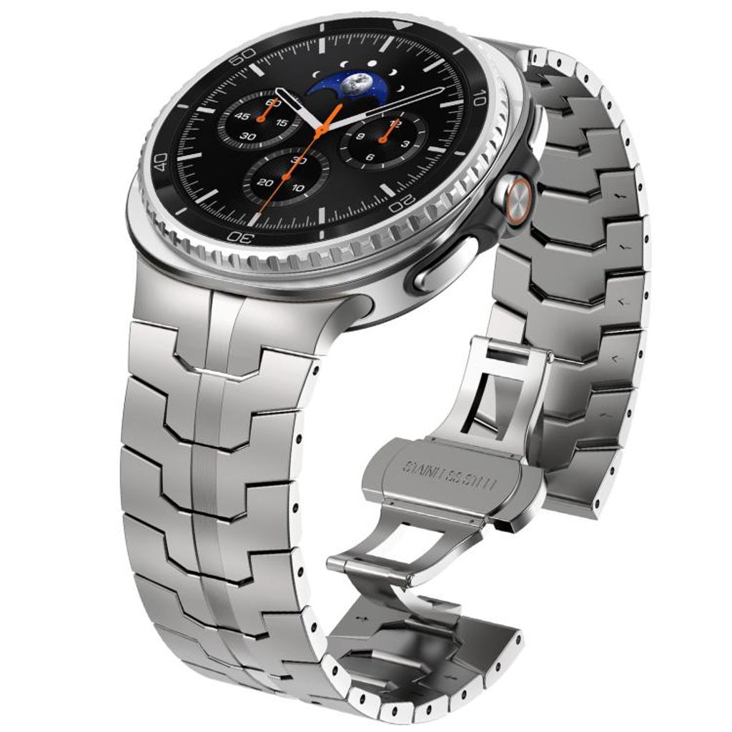 Anna Samsung Galaxy Watch8- ja Watch8 Classic -kelloillesi tyylikäs ja kestävä tuntuma tällä ruostumattomasta teräksestä valmistetulla kellorannekkeella, jossa on moderni perhoslukko. Ranneke on mukava ja sen pituussäätö on helppo säätää, joten se sopii täydellisesti jokapäiväiseen käyttöön.