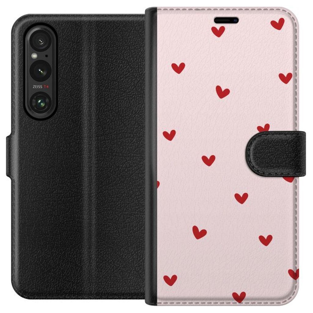 Sony Xperia 1 V Musta Lompakkokotelo Små Hjärtan