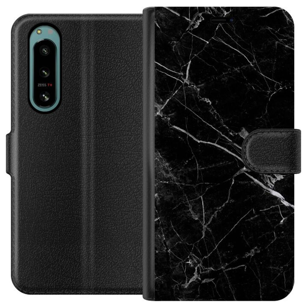 Sony Xperia 5 IV Musta Lompakkokotelo Svart marmor