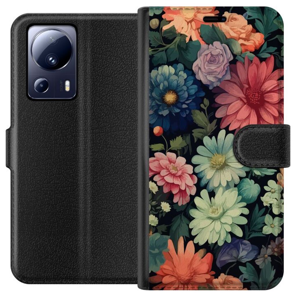 Xiaomi 13 Lite Musta Lompakkokotelo Färglada blommor