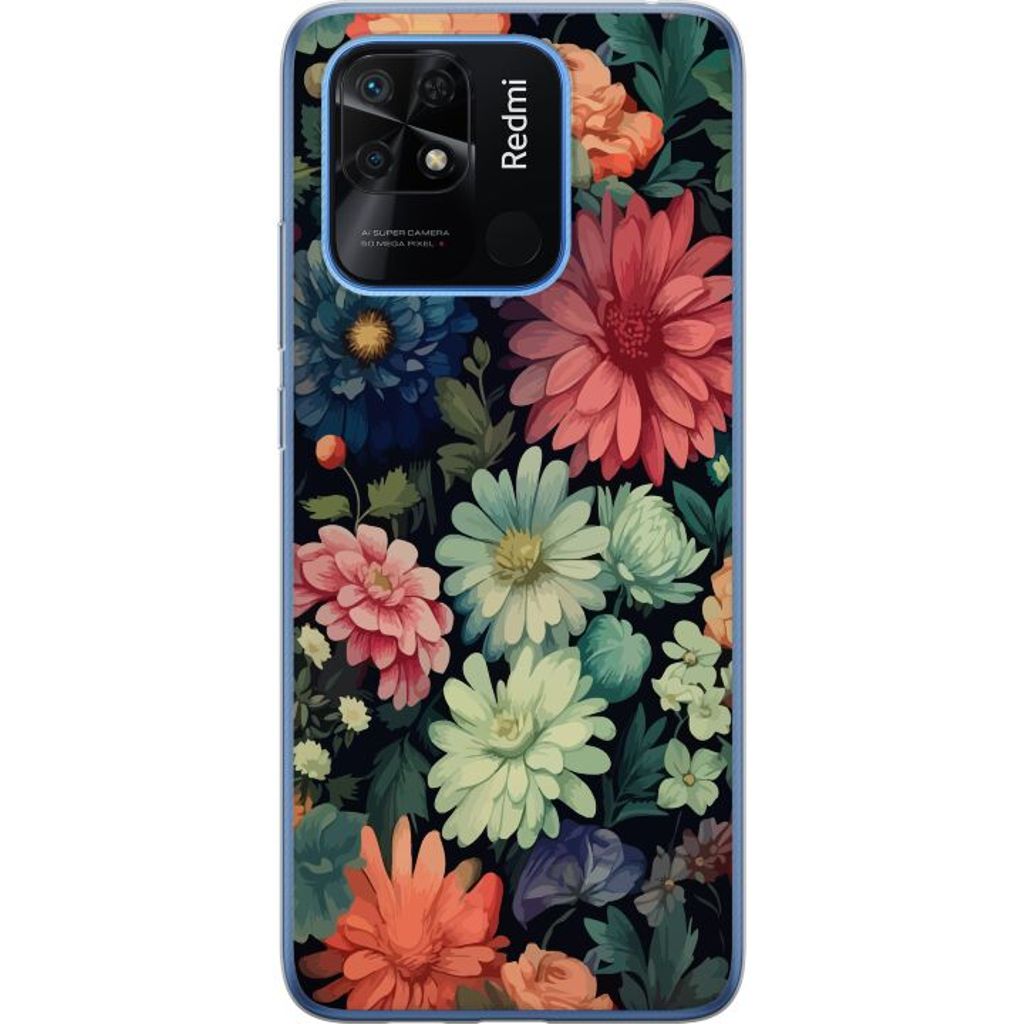 Xiaomi Redmi 10C Läpinäkyvä Puhelinkotelo Färglada blommor
